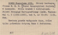 ROMER Eugeniusz 1931 Zbiory kartograficzne R. G. S. [Royal Geographical Society] w Londynie. Kilka wrażeń i doświadczeń.