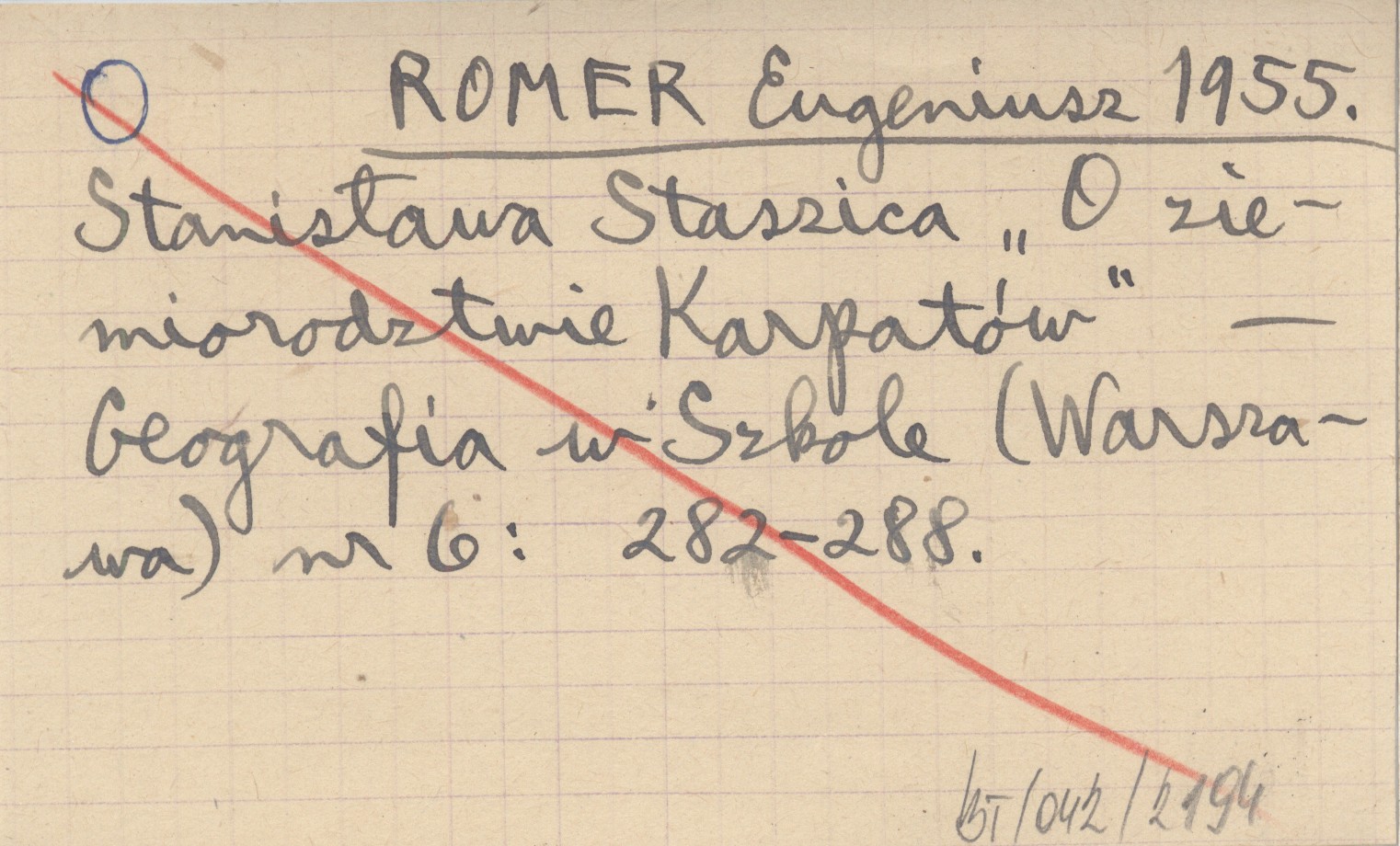 ROMER Eugeniusz 1955 Stanisława Staszica "O ziemiorodztwie Karpatów".