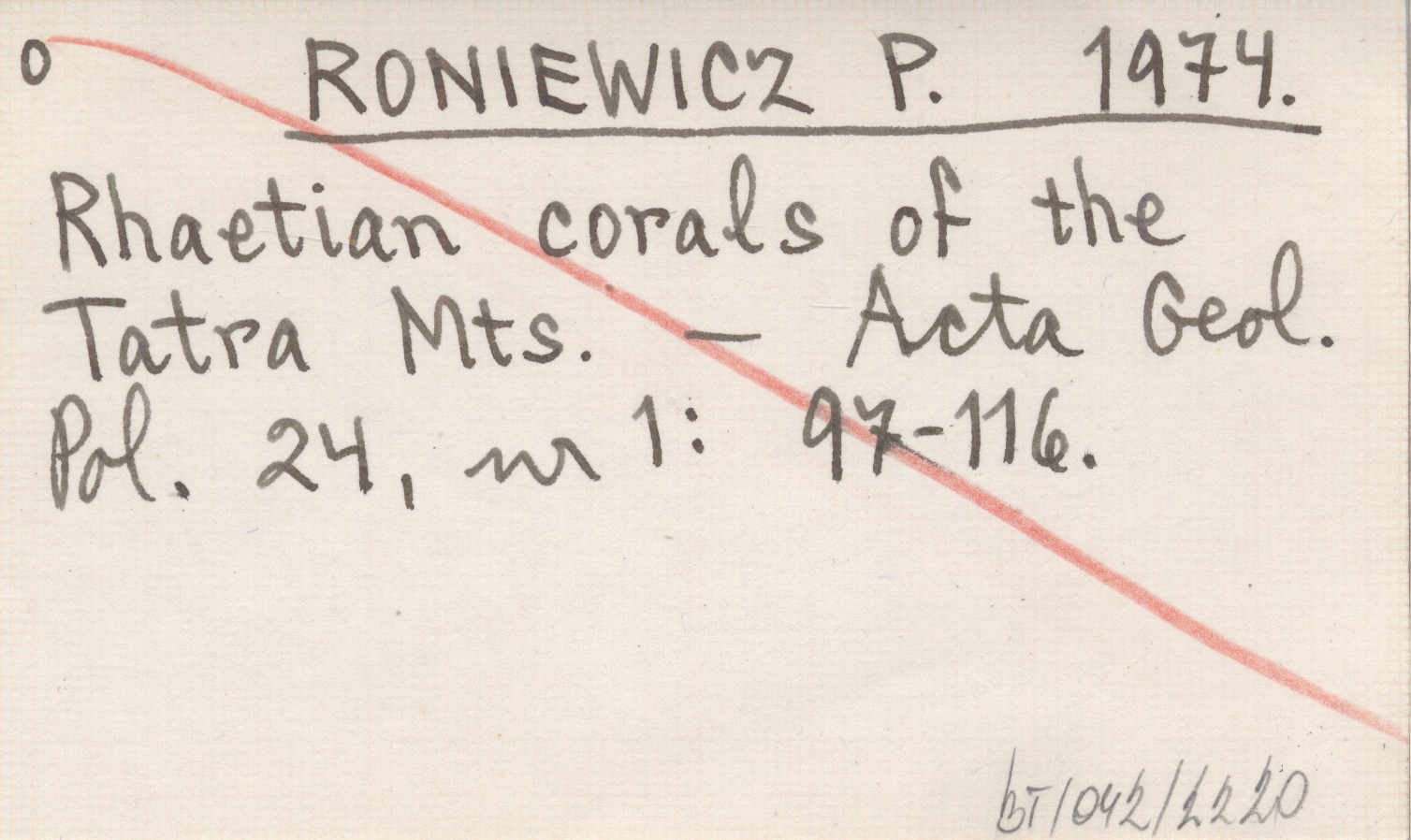 RONIEWICZ P. 1974 Rhaetian corals of the Tatra Mts.