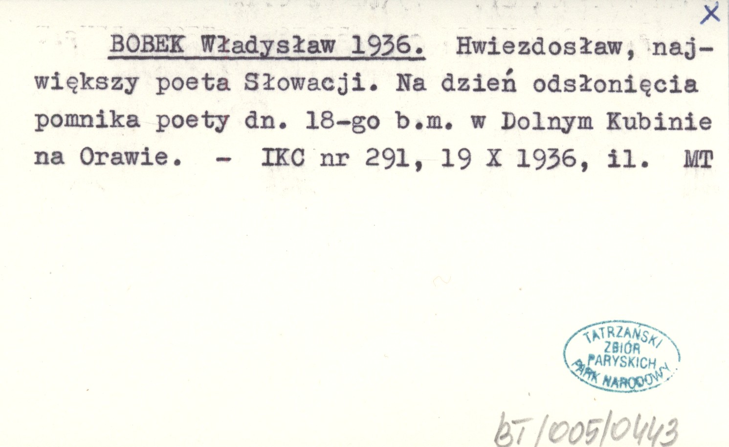 BOBEK Władysław 1936 Hwiezdosław, największy poeta Słowacji. Na dzień odsłonięcia pomnika poety dn. 18-go b.m. w Dolnym Kubinie na Orawie.