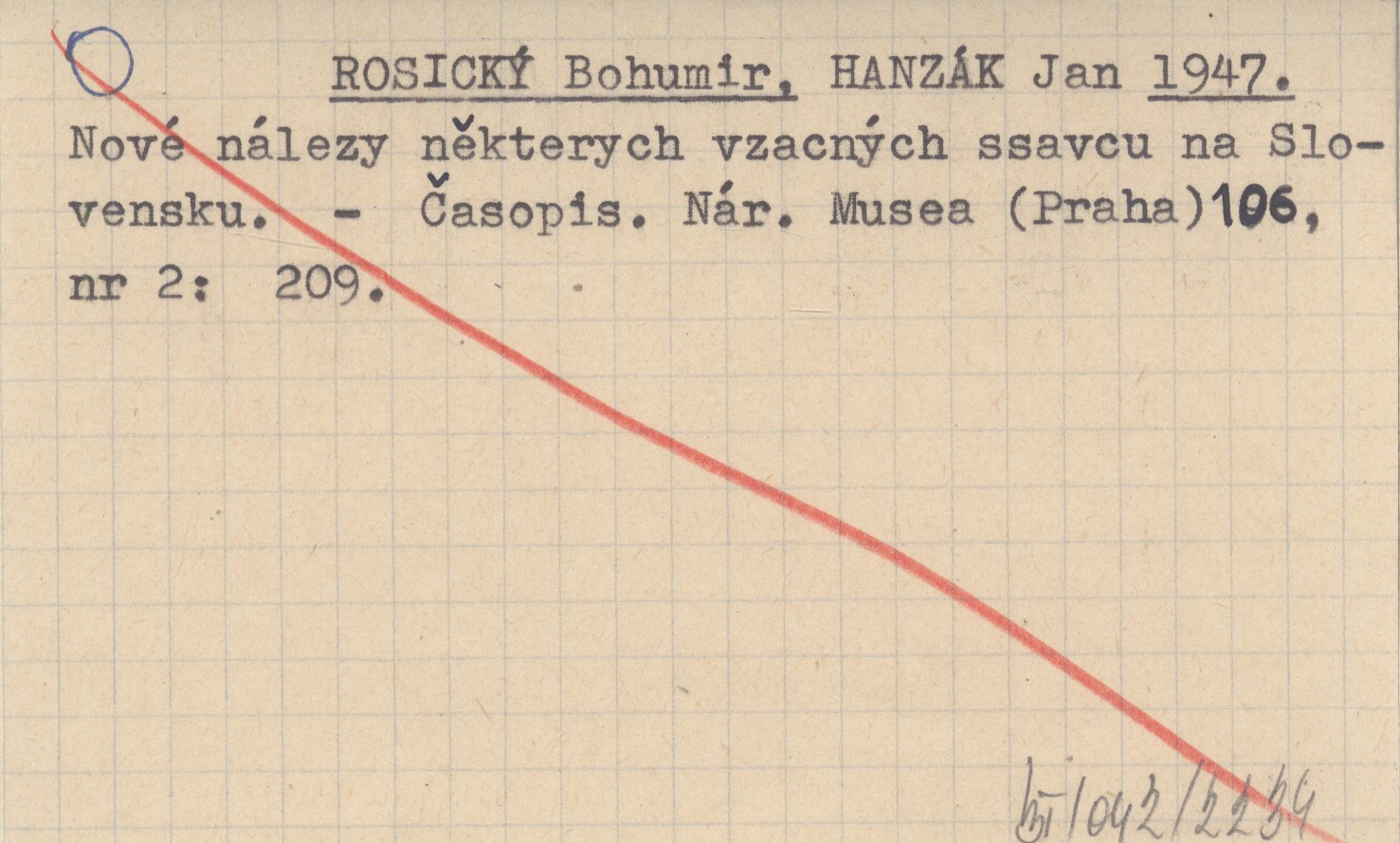ROSICKÝ Bohumir HANZÁK, Jan. ; 1947 Nové nálezy některych vzacných ssavcu na Slovensku.