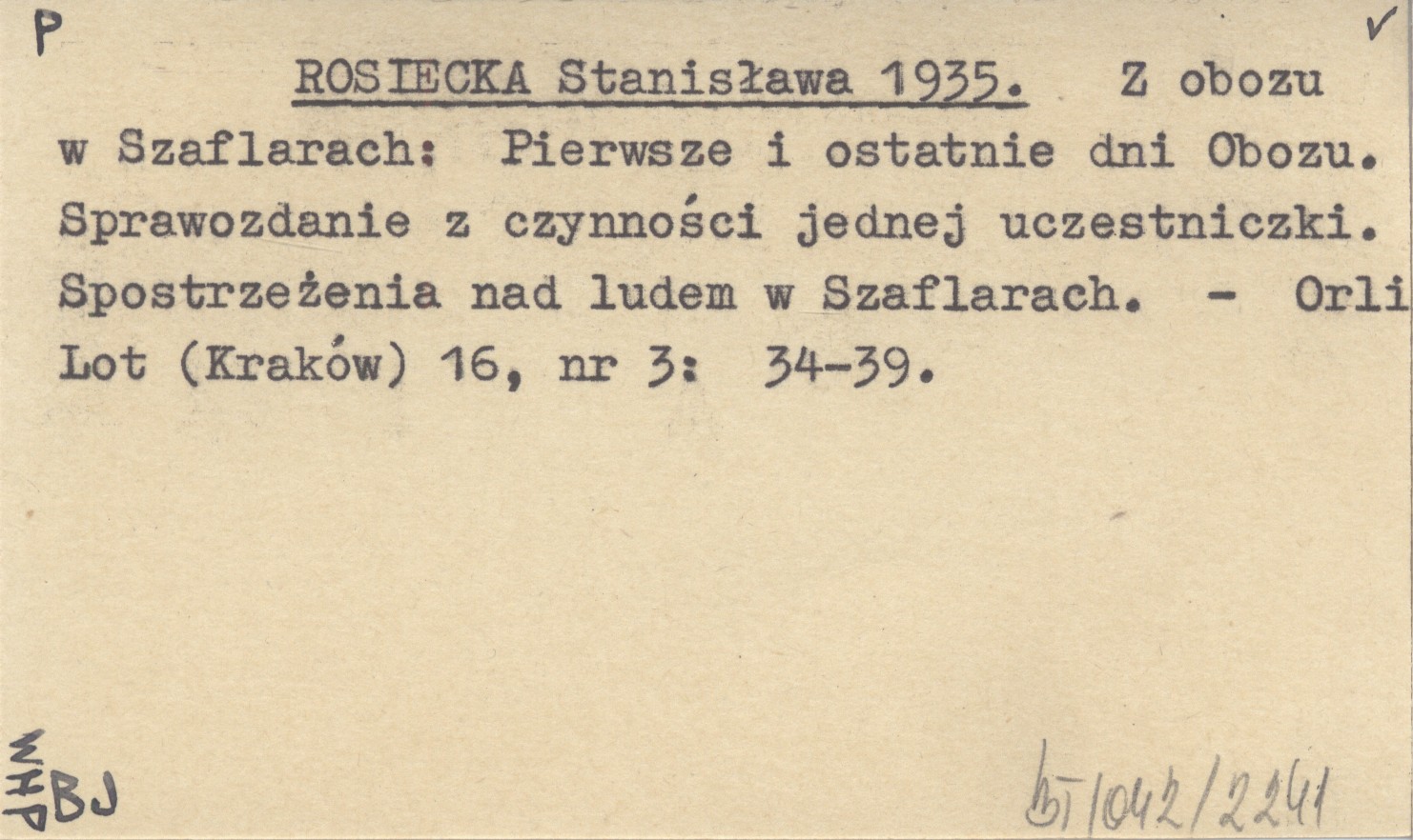 ROSIECKA Stanisława 1935 Z obozu w Szaflarach: Pierwsze i ostatnie dni Obozu. Sprawozdanie z czynności jednej uczestniczki. Spostrzeżenia nad ludem w Szaflarach.