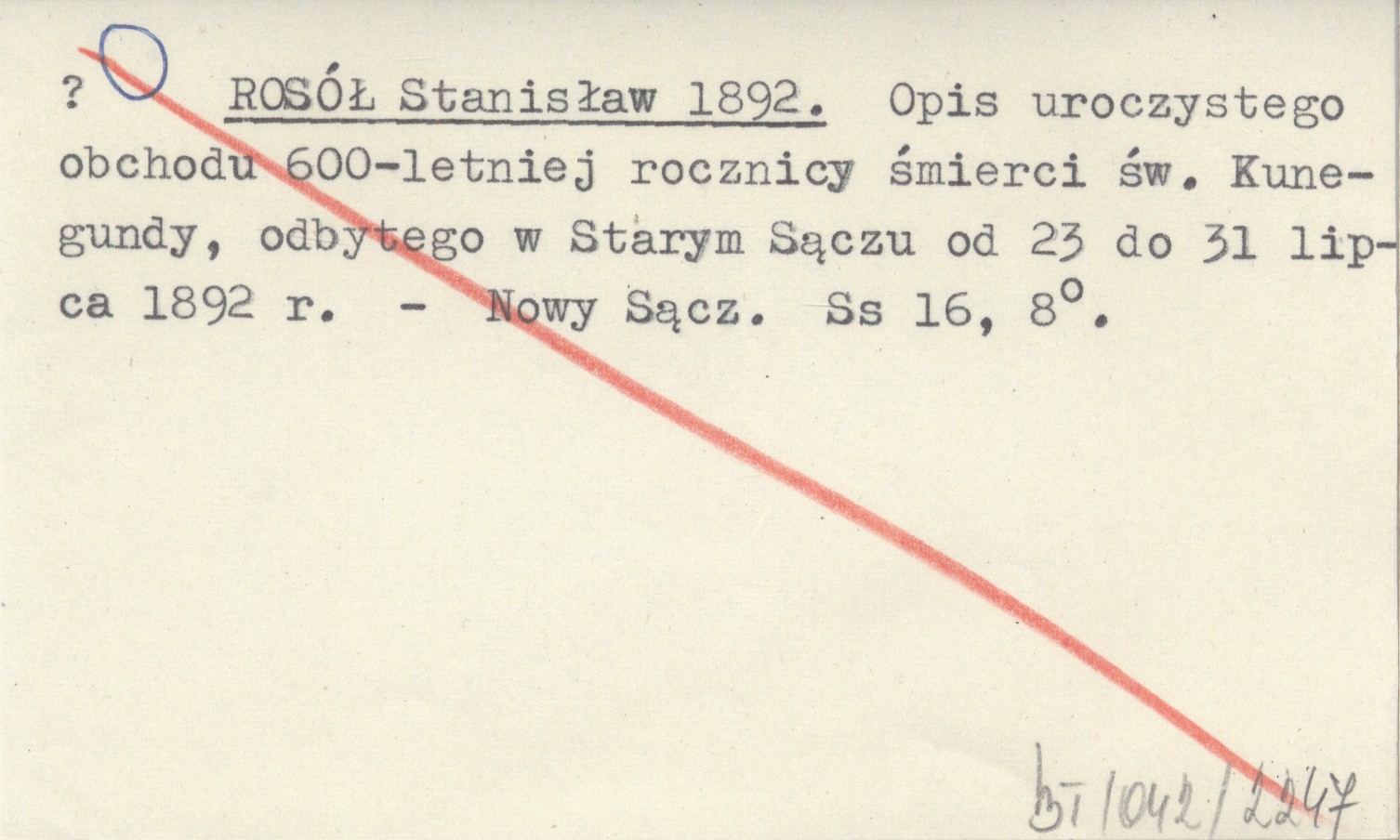 ROSÓŁ Stanisław 1892 Opis uroczystego obchodu 600-letniej rocznicy śmierci św. Kunegundy, odbytego w Starym Sączu od 23 do 31 lipca 1892 r.