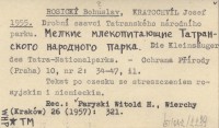 ROSICKÝ Bohuslav KRATOCHVÍL, Josef. ; 1955 Drobní ssavci Tatranského národního parku. Melkie mlekopitajušie Tatranskogo narodnogo parka. Die Kleinsäuger des Tatra-Nationalparks.