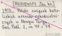 [ROSIEWICZ Jan ks.] 1913 Polski związek katolickich uczniów rękodzielniczych w Nowym Targu.