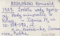 ROSŁOŃSKI Romuald 1929 Źródła wody żywiącej. Wody mineralne w Polsce.