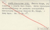 ROSÓŁ Stanisław 1892 Święta Kinga, jej klasztor i miasto Sącz Stary. Szkic historyczno-monograficzny na pamiątkę uroczystości 600-letniej rocznicy śmierci św. Kingi.