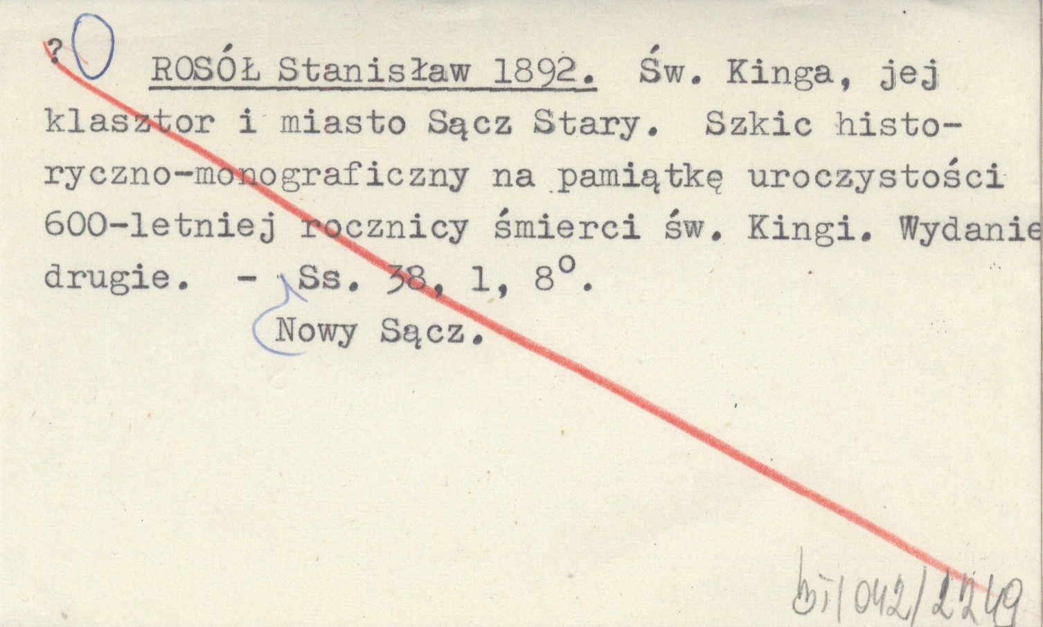 ROSÓŁ Stanisław 1892 Św. Kinga, jej klasztor i miasto Sącz Stary. Szkic historyczno-monograficzny na pamiątkę uroczystości 600-letniej rocznicy śmierci św. Kingi. Wydanie drugie.