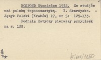 ROSPOND Stanisław 1932 Ze studjów nad polską toponomastyką. I. Skarżysko.