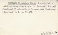 ROSPOND Stanisław 1969 Stratygrafia polskich nazw osobowych.