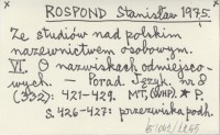 ROSPOND Stanisław 1975 Ze studiów nad polskim nazewnictwem osobowym. VI. O nazwiskach odmiejscowych.