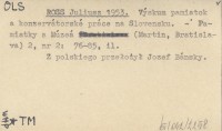 ROSS Juliusz 1953 Výskum pamiatok a konzervátorské práce na Slovensku.