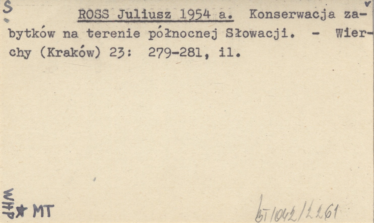 ROSS Juliusz 1954 a Konserwacja zabytków na terenie północnej Słowacji.