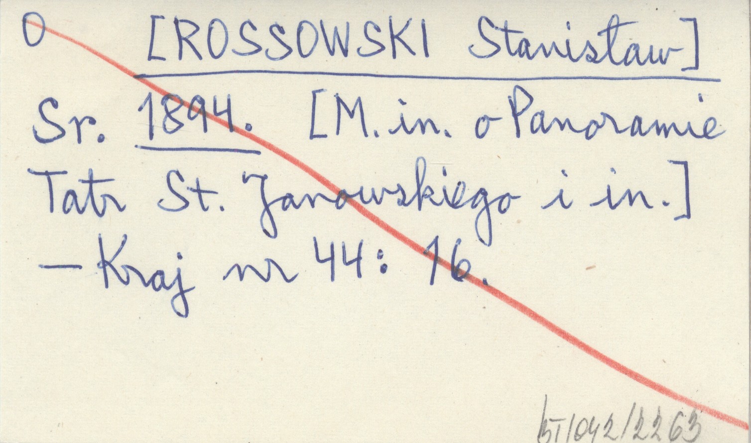 Sr. [ROSSOWSKI Stanisław] 1894 [M.in. o Panoramie Tatr St. Janowskiego i in.].