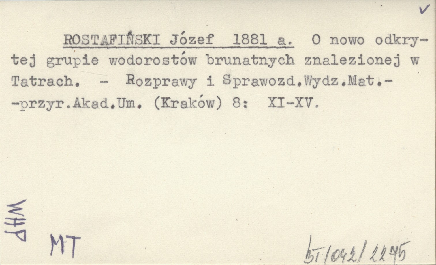 ROSTAFIŃSKI Józef 1881 a O nowo odkrytej grupie wodorostów brunatnych znalezionej w Tatrach.