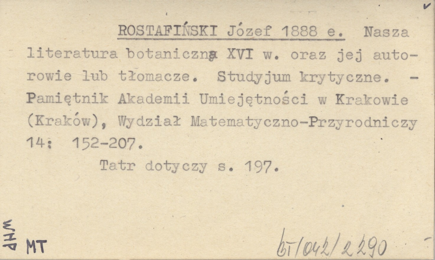 ROSTAFIŃSKI Józef 1888 e Nasza literatura botaniczna XVI w. oraz jej autorowie lub tłomacze. Studyjum krytyczne.
