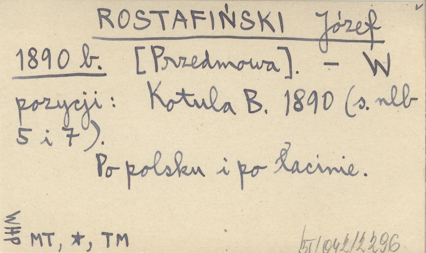 Kotula B. 1890. , [5], [7]. Po polsku i po łacinie.