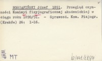 ROSTAFIŃSKI Józef 1891 Przegląd czynności Komisyi fizyjograficznej akademickiej w ciągu roku 1890/91.