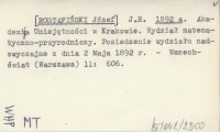 ROSTAFIŃSKI Józef 1902 Akademia Umiejętności w Krakowie. Wydział matematyczno-przyrodniczy. Posiedzenie z d. 7 stycznia 1902 r.
