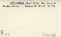 ROSTAFIŃSKI Józef 1919 Rys życia M. Raciborskiego.