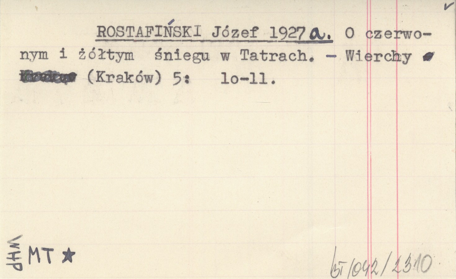 ROSTAFIŃSKI Józef 1927 a O czerwonym i żółtym śniegu w Tatrach.