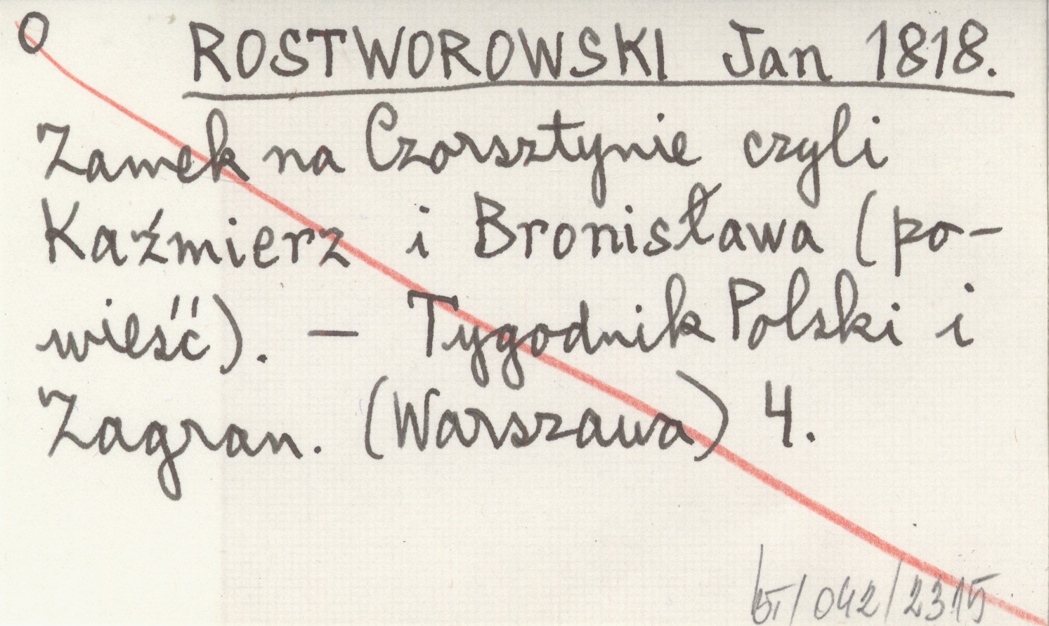 ROSTWOROWSKI Jan 1818 Zamek na Czorsztynie czyli Kaźmierz i Bronisława (powieść).