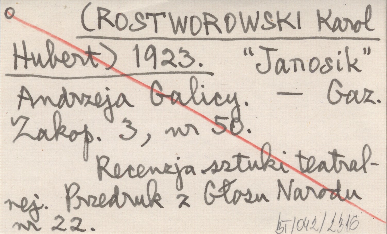 (ROSTWOROWSKI Karol Hubert) 1923 "Janosik" Andrzeja Galicy.