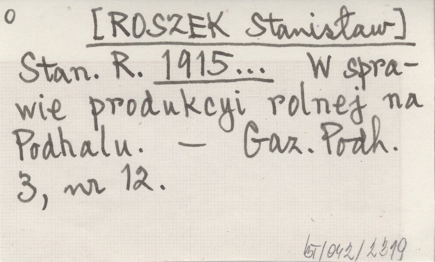 Stan. R. [ROSZEK Stanisław] 1915... W sprawie produkcyi rolnej na Podhalu.