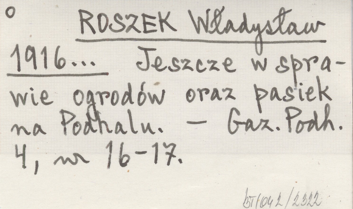 ROSZEK Władysław 1916... Jeszcze w sprawie ogrodów oraz pasiek na Podhalu.
