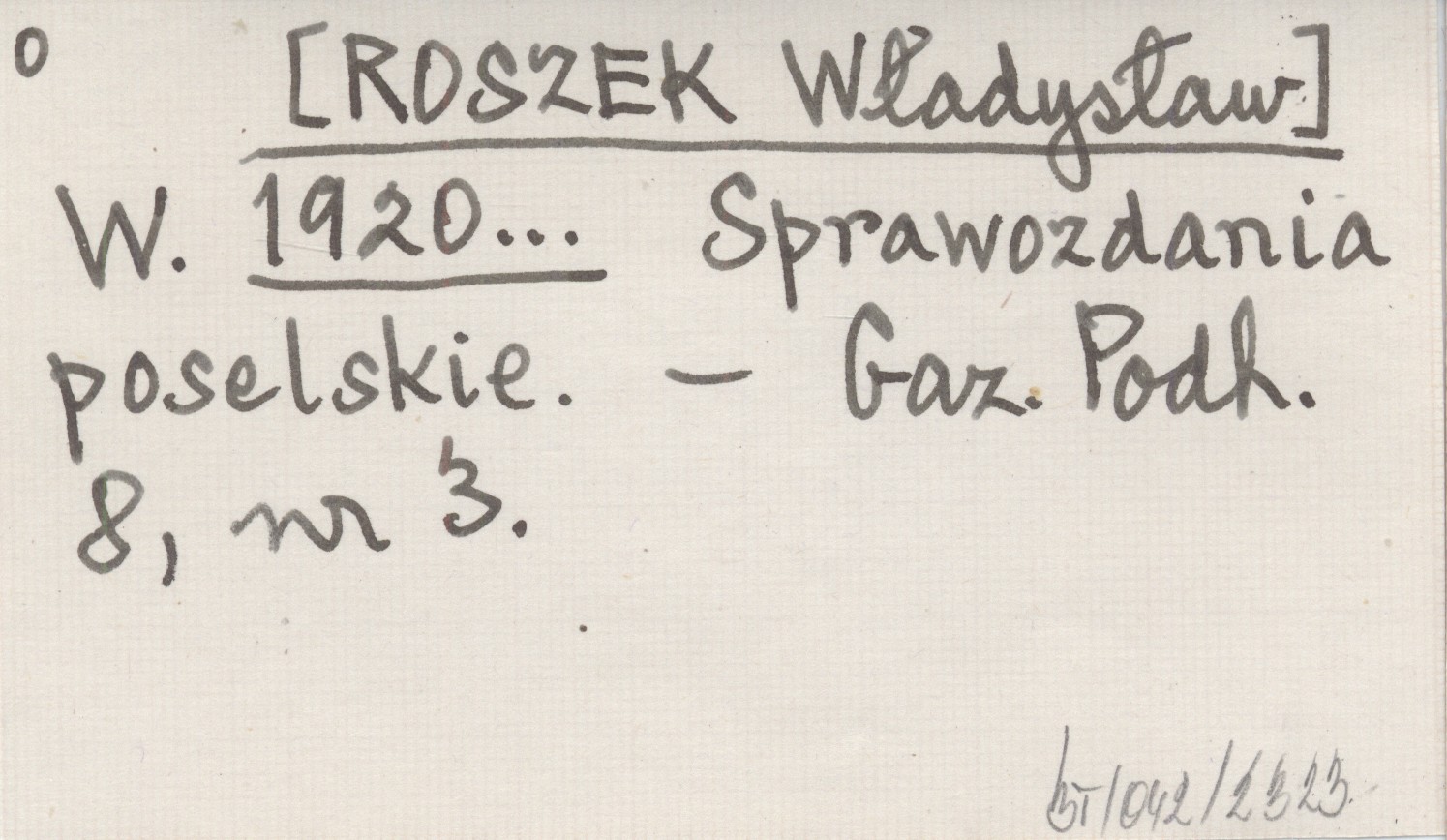 W. [ROSZEK Władysław] 1920... Sprawozdania poselskie.