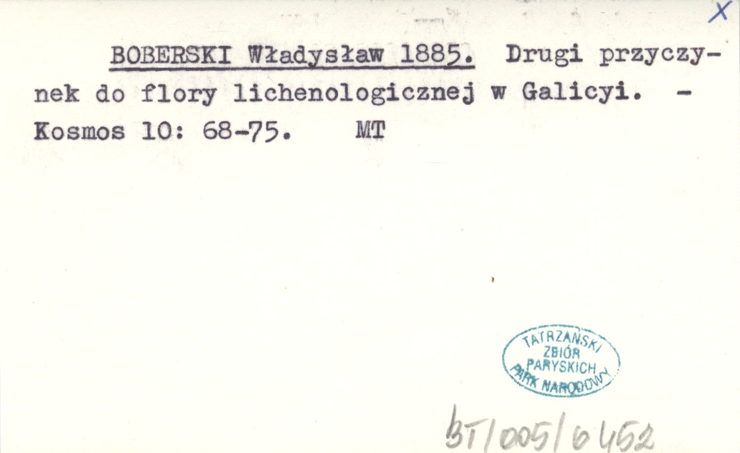 BOBERSKI Władysław 1885 Drugi przyczynek do flory lichenologicznej w Galicyi.