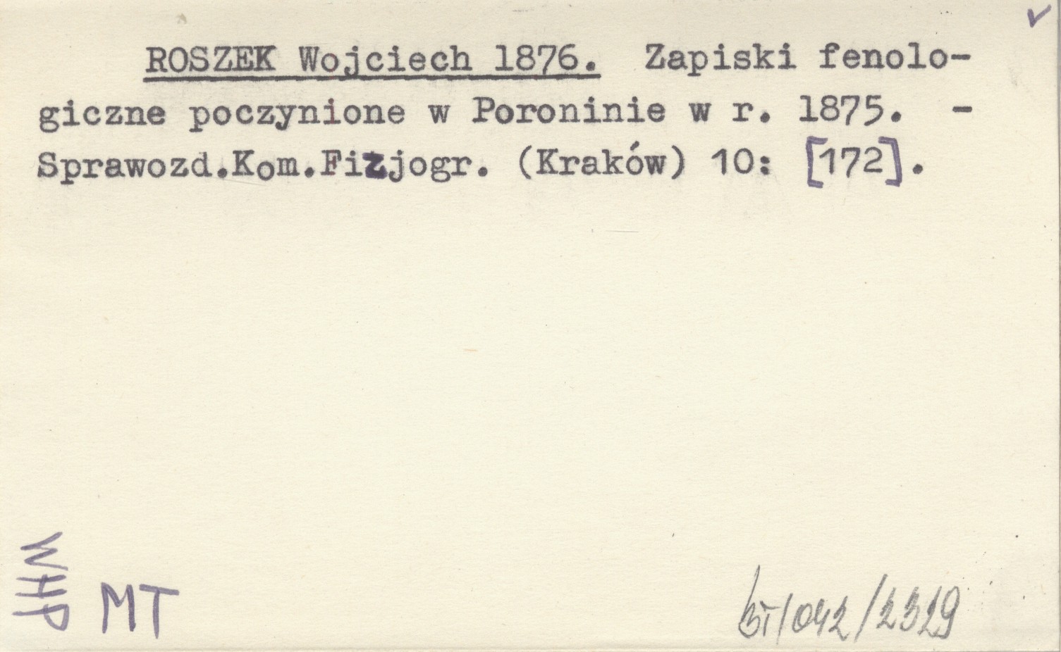 ROSZEK Wojciech 1876 Zapiski fenologiczne poczynione w Poroninie w r. 1875.