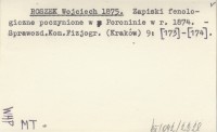ROSZEK Wojciech 1875 Zapiski fenologiczne poczynione w Poroninie w r. 1874.