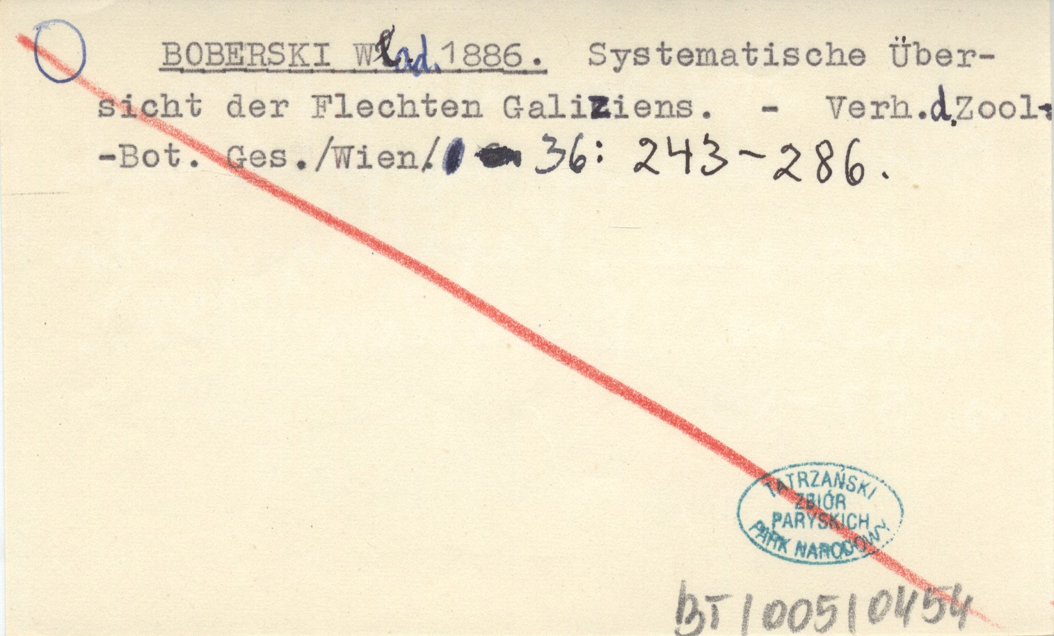 BOBERSKI Wład. 1886 Systematische Übersicht der Flechten Galiziens.