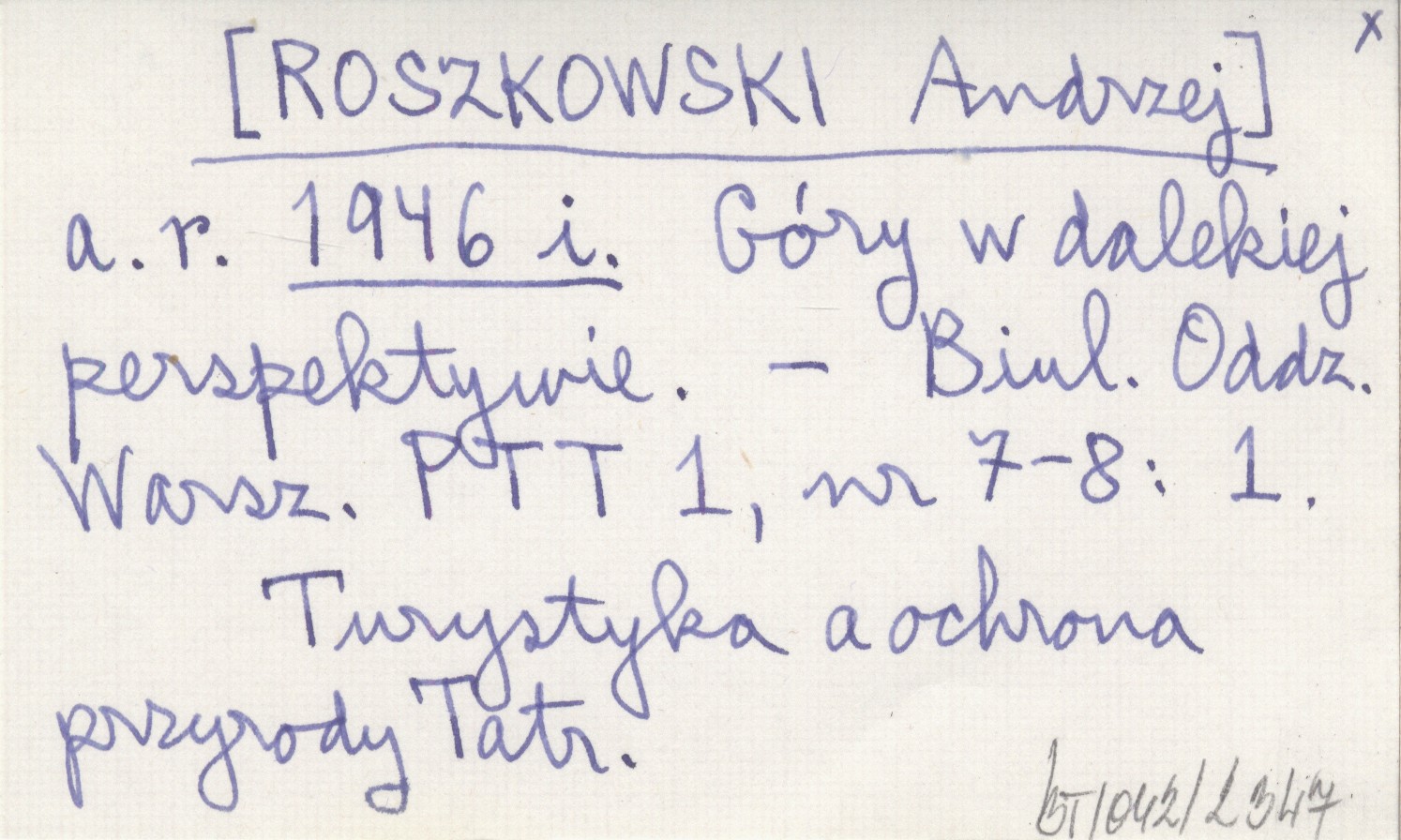 a. r. [ROSZKOWSKI Andrzej] 1946 i Góry w dalekiej perspektywie.