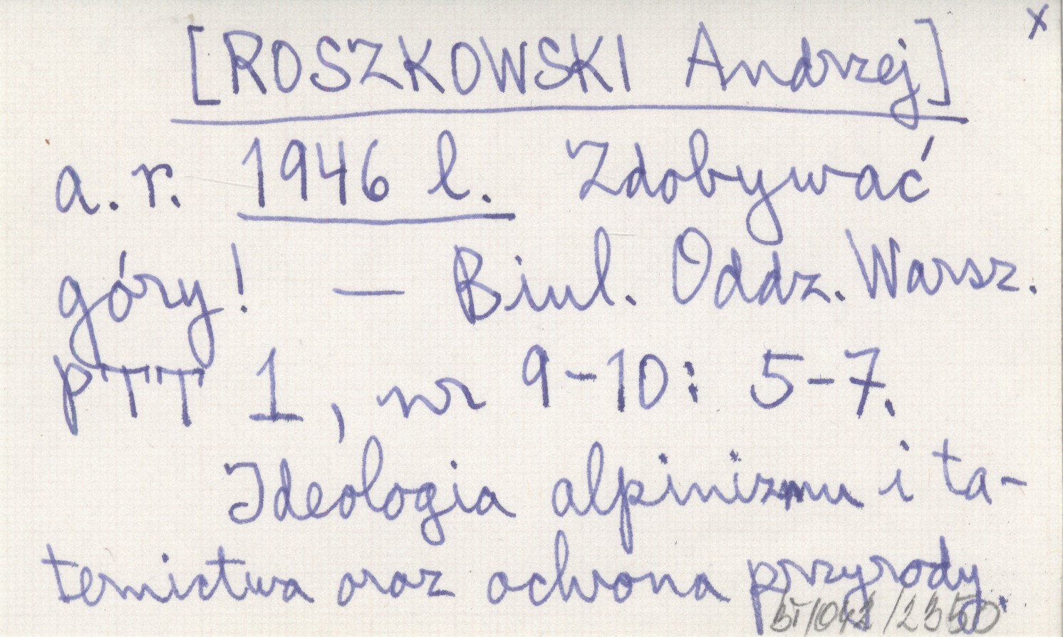 Biuletyn Oddziału Warszawskiego PTT, 1, nr 9-10: 5-7. Ideologia alpinizmu i taternictwa oraz ochrona przyrody.