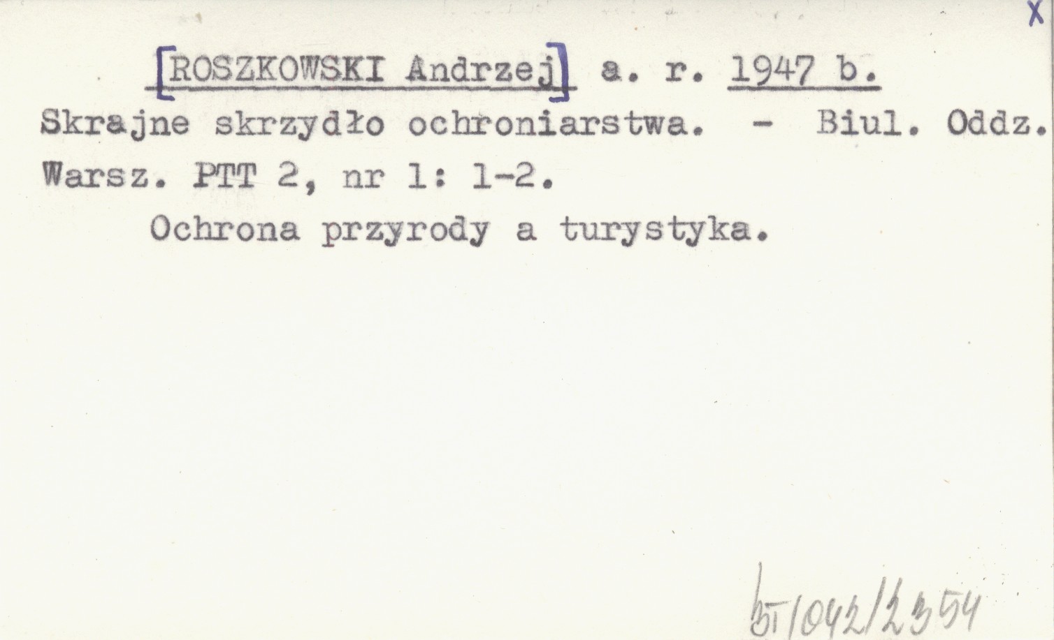 a. r. [ROSZKOWSKI Andrzej] 1947 b Skrajne skrzydło ochroniarstwa.