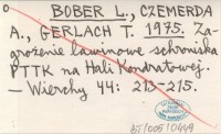 BOBER L. CZEMERDA, A. ; GERLACH, T. ; 1975 Zagrożenie lawinowe schroniska PTTK na Hali Kondratowej.