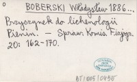 BOBERSKI Władysław 1885 a Przyczynek do lichenologicznej flory Galicyi ze szczególnem uwzględnieniem galicyjskiego Podola. Sprawozdanie z wycieczki odbytej w roku 1884.