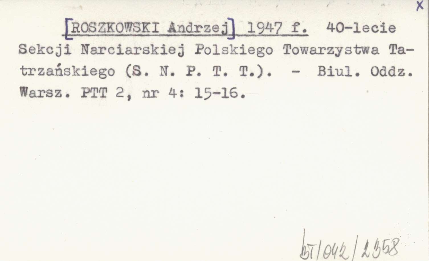 [ROSZKOWSKI Andrzej] 1947 f 40-lecie Sekcji Narciarskiej Polskiego Towarzystwa Tatrzańskiego (S. N. P. T. T.).