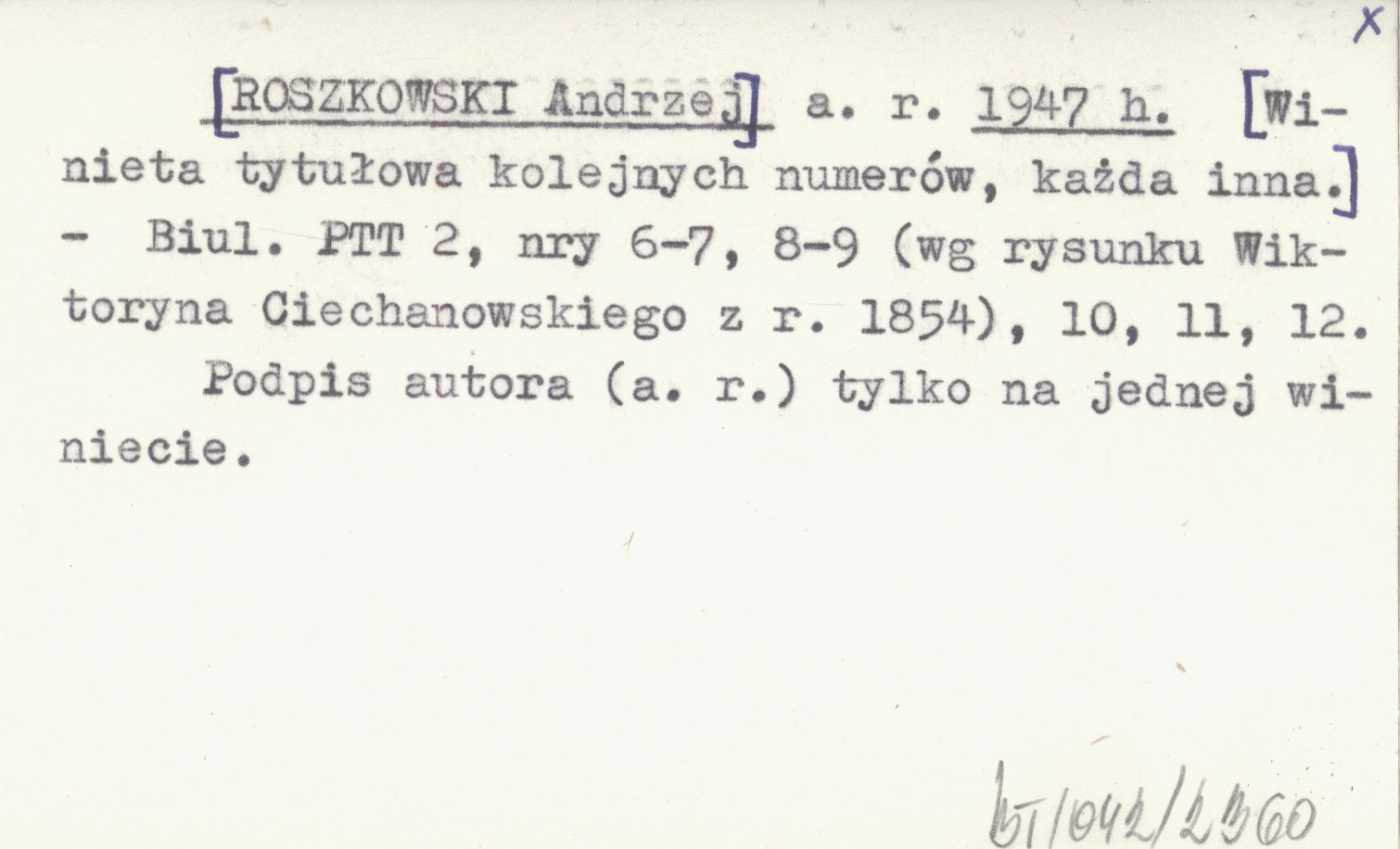 a. r. [ROSZKOWSKI Andrzej] 1947 h [Winieta tytułowa kolejnych numerów, każda inna].
