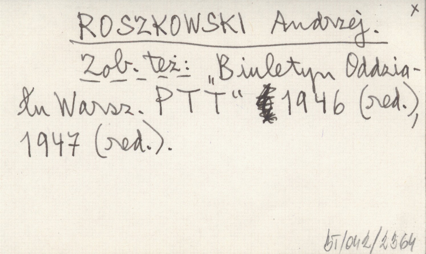 "Biuletyn Oddziału Warszawskiego PTT" 1946 (red.) "Biuletyn Oddziału Warszawskiego PTT" 1947 (red.)