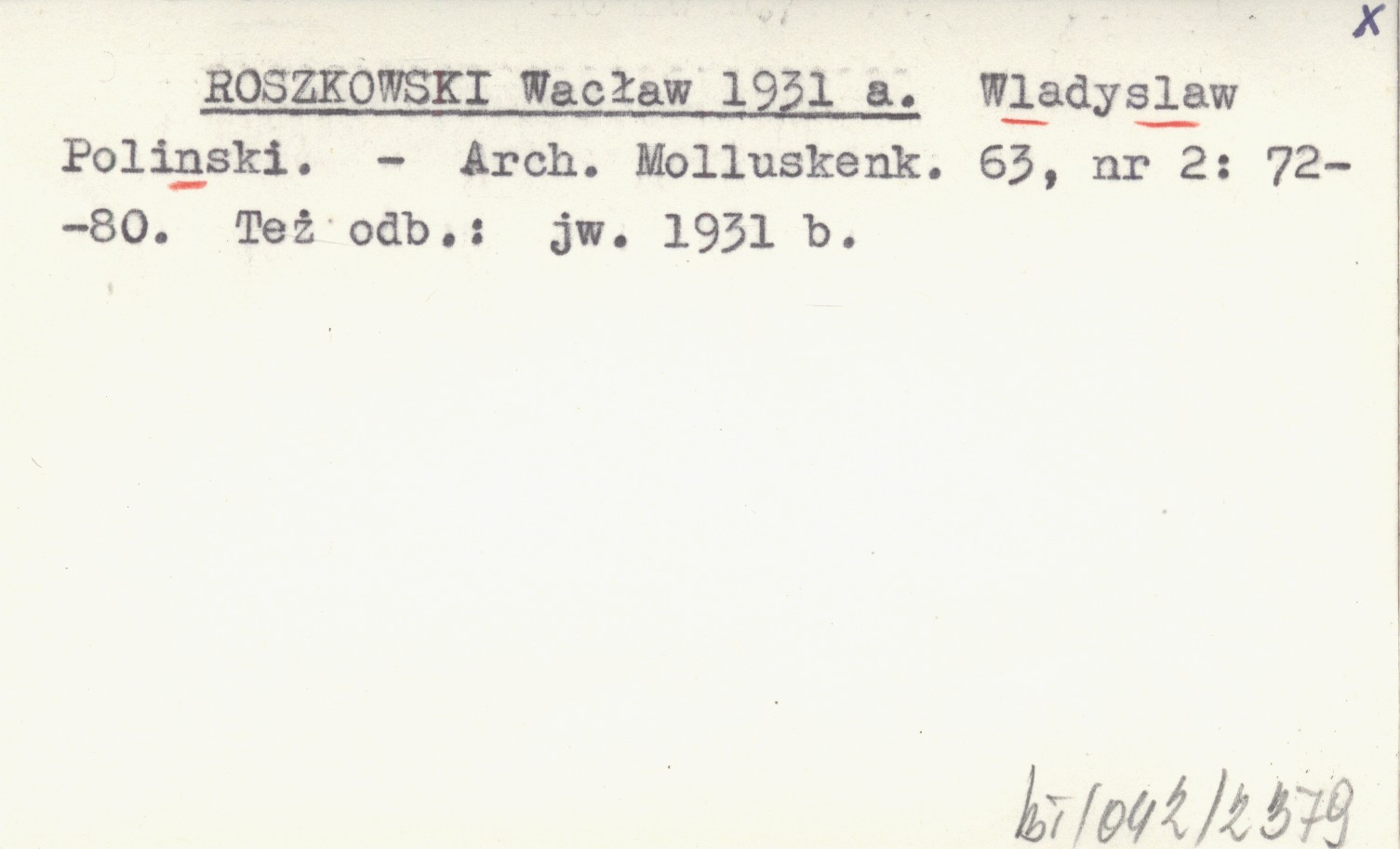 Arch. Molluskenk., 63, nr 2: 72-80. Też odb.: jw. 1931 b