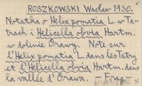 ROSZKOWSKI Wacław 1930 Notatka o Helix pomatia L. w Tatrach i Helicella obvia Hartm. w dolinie Orawy. Note sur l'Helix pomatia L. dans les Tatry et l'Helicella obvia Hartm. dans la vallée d'Orawa.