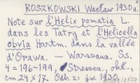 ROSZKOWSKI Wacław 1930 a Note sur l'Helix pomatia L. dans les Tatry et l'Helicella obvia Hartm. dans la vallée d'Orawa.