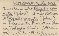 ROSZKOWSKI Wacław 1932 Nowe stanowisko Polycelis cornuta (Johns.). A new station of Polycelis cornuta (Johns.).