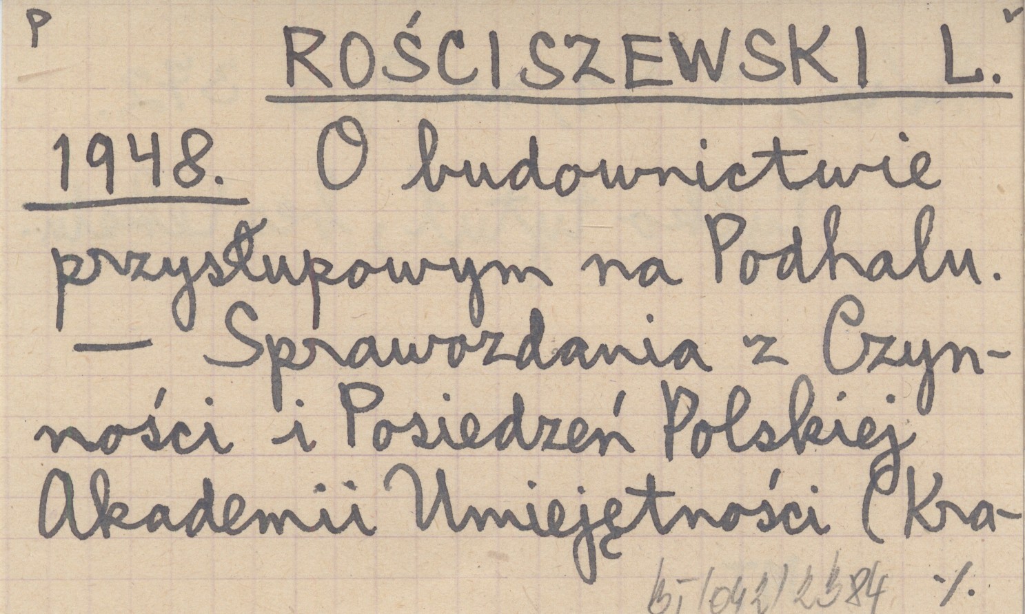 ROŚCISZEWSKI L. 1948 O budownictwie przysłupowym na Podhalu.