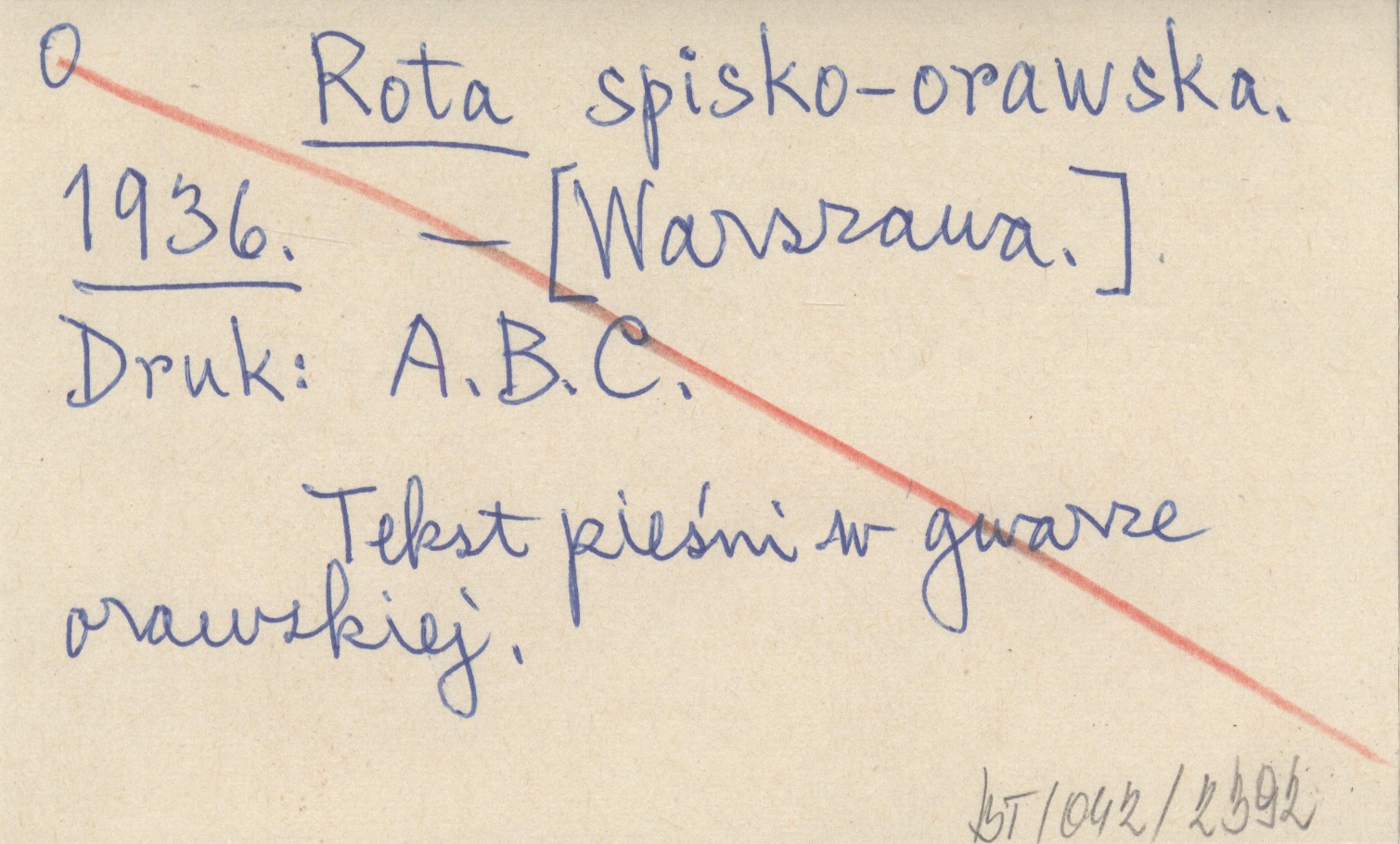 [Warszawa] , Tekst pieśni w gwarze orawskiej. Druk: A.B.C.