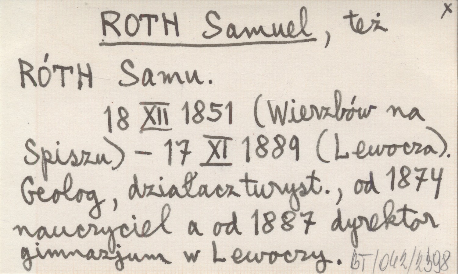 18 XII 1851 (Wierzbów na Spiszu) - 17 XI 1889 (Lewocza). Geolog, działacz turyst., od 1874 nauczyciel a od 1887 dyrektor gimnazjum w Lewoczy.