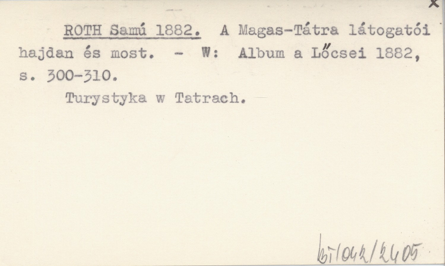 ROTH Samú 1882 A Magas-Tátra látogatói hajdan és most.